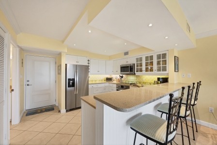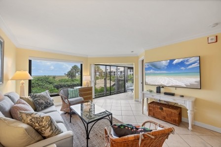 Fully updated, ground floor, beachfront 750 sq ft 1 bed 1 bath unit in prime location at the Boca Grande Club. Literally 100 steps from the Gulf - and centrally located to the pool, tiki bar, tennis, fitness center and Club restaurant. With private stairs to the beach, an oversized kitchen and bath, lanai dining area, luxury king size bed and queen sleeper sofa, new appliances and a 65” TV, this is your home away from home for enjoying an active or relaxing, stress free beach vacation!
