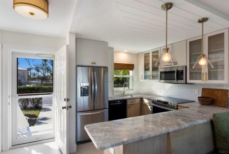 Step into coastal charm with this fully remodeled 750 sq. ft. third-floor unit, easily accessible by elevator. Nestled above it all, you'll enjoy peaceful privacy and stunning views of the Gulf of Mexico. Inside, a full kitchen and in-unit washer/dryer offer everyday convenience, while the private lanai invites you to relax and take in the soothing Gulf breezes and unforgettable sunsets. Your perfect beachside retreat awaits!