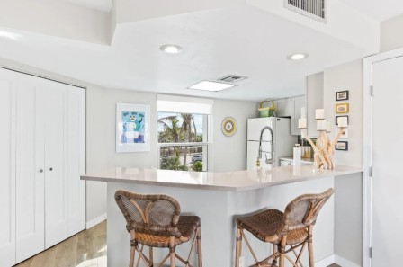 DC307 - One Bedroom/One BathBeachfront Condos1 Bedroom • 1 Bathroom • Sleeps 2 3rd Floor corner unit - 750 sq. ft. Newly renovated condominium - Full kitchen and washer/dryer- Overlooking the Gulf of Mexico. Enjoy Gulf breezes and breathtaking sunsets from your own screened lanai.Amenities