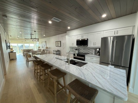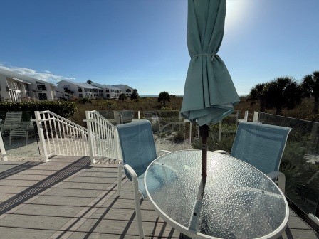 11A - Two Bedroom/Two BathBeachfront Club Condos2 Bedrooms • 2 Bathrooms • Sleeps 4 Exquisite 1,200 sq. ft. first-floor condominium, fully remodeled with elegant coastal finishes. Enjoy effortless beach access and stunning Gulf views from your enclosed lanai or outside deck—perfect for savoring spectacular sunsets. Featuring a gourmet kitchen, premium appliances, and in-unit washer/dryer for ultimate convenience.Amenities