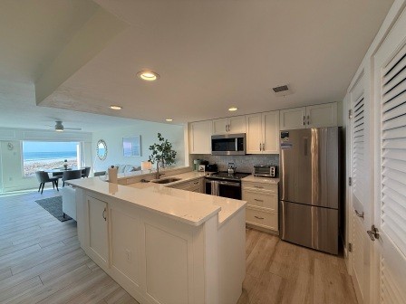 DC302 - One Bedroom/Two BathBeachfront Condos1 Bedroom • 2 Bathrooms • Sleeps 2 Third floor - Beautifully remodeled 900 Sq. Ft.;Overlooking the Gulf of Mexico. Full kitchen and washer/dryer, all new furniture; Enjoy breathtaking sunsets from living room area and enclosed lanai. Amenities